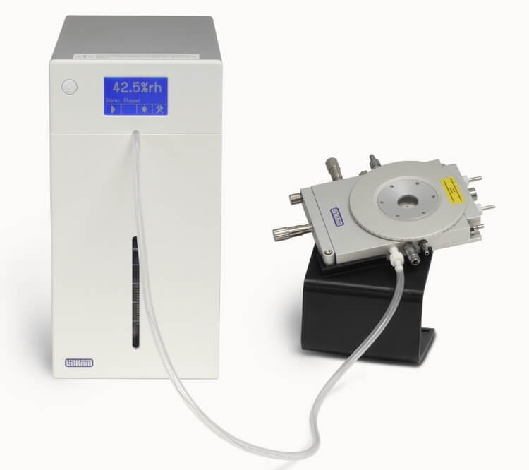 The RH95 quickly controls humidity inside a linkam stage or any other sealed chamber up to a volume of 2000cc from 5 to 90%.